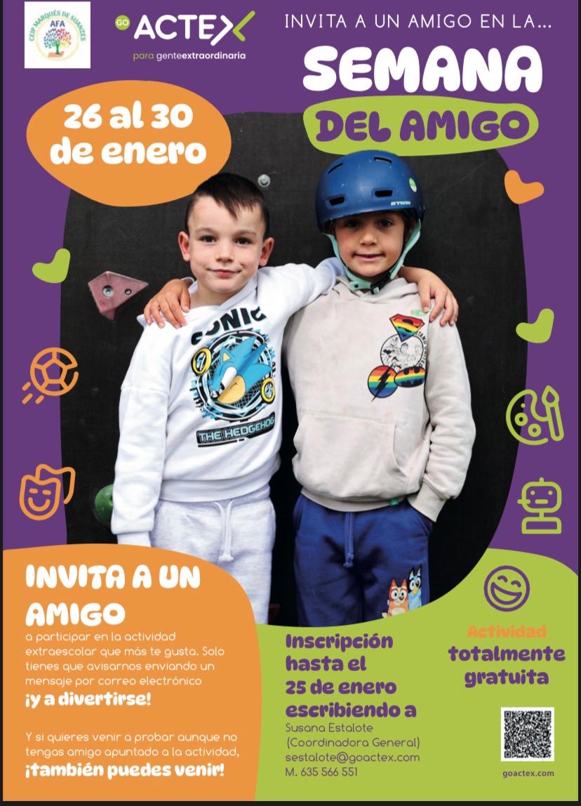 Del 26 al 30 de enero, los alumnos pueden invitar a un amigo a participar en la actividad extraescolar que más les gusta.
