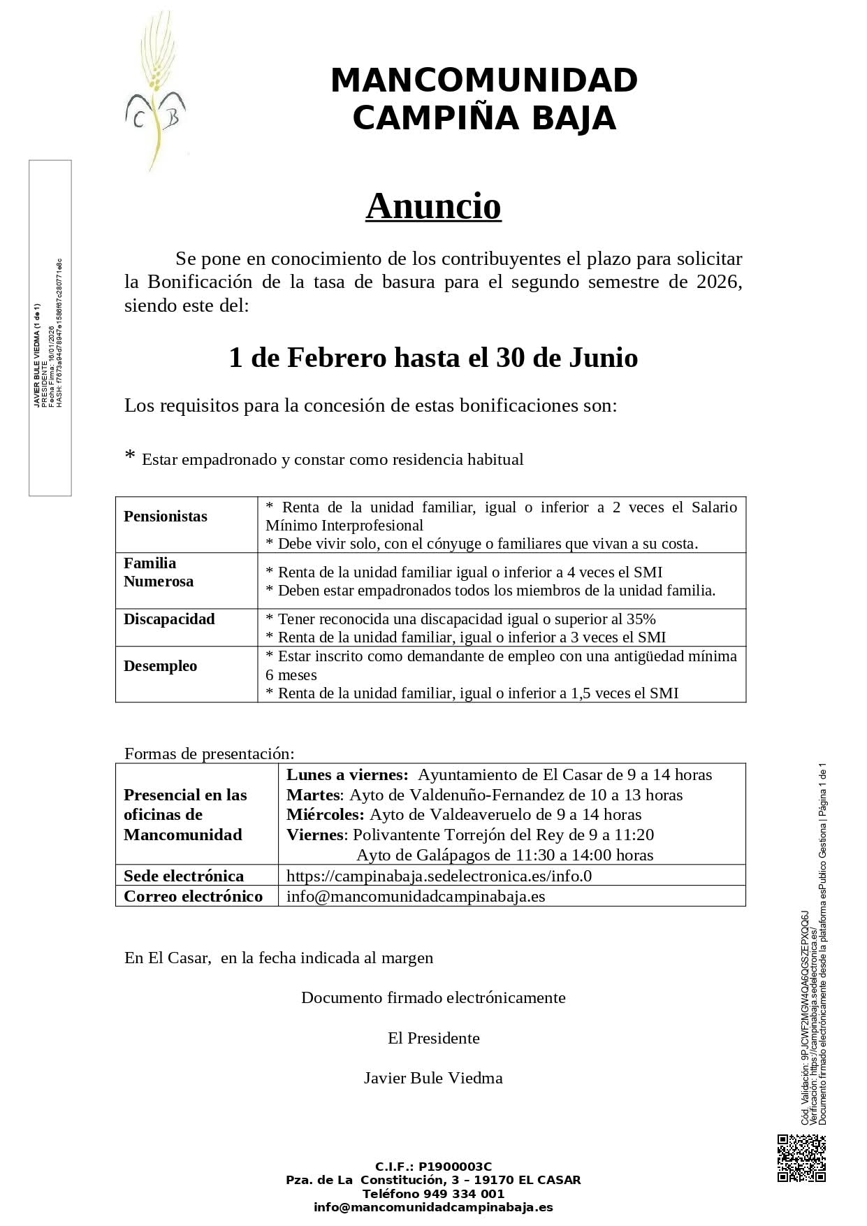 📢 ¡ATENCIÓN! plazo para la Bonificación de la Tasa de Basura (2º Semestre 2026) 🗑️💰