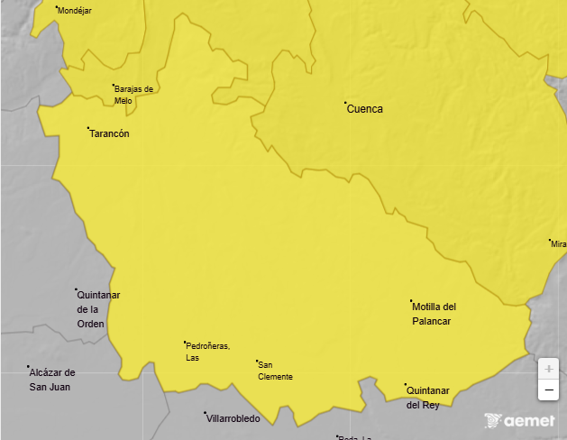 La Agencia Estatal de Meteorología (AEMET), ha activado desde las 20:00H del día de hoy hasta las 14:00H del sábado 24 de enero, el aviso de nivel amarillo por nieve (Acumulación de nieve en 24h: 2cm) en la Mancha Conquense.