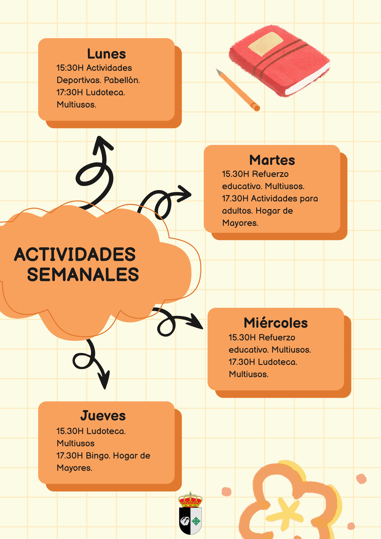 Además, continuamos con las actividades de ocio para nuestros mayores, que se desarrollarán en el Hogar de Mayores, promoviendo la participación, la convivencia y el bienestar 💙.