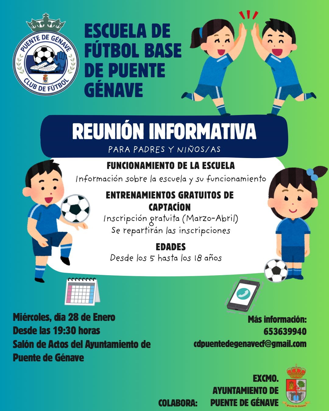 Más información: 653 639 940 · cdpuentedegenavecf@gmail.com
