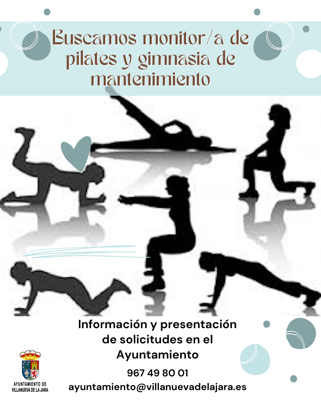 Desde el Ayuntamiento de Villanueva de la Jara queremos contar con una persona que imparta clases de pilates y gimnasia de mantenimiento, para seguir fomentando hábitos saludables entre nuestros vecinos y vecinas.