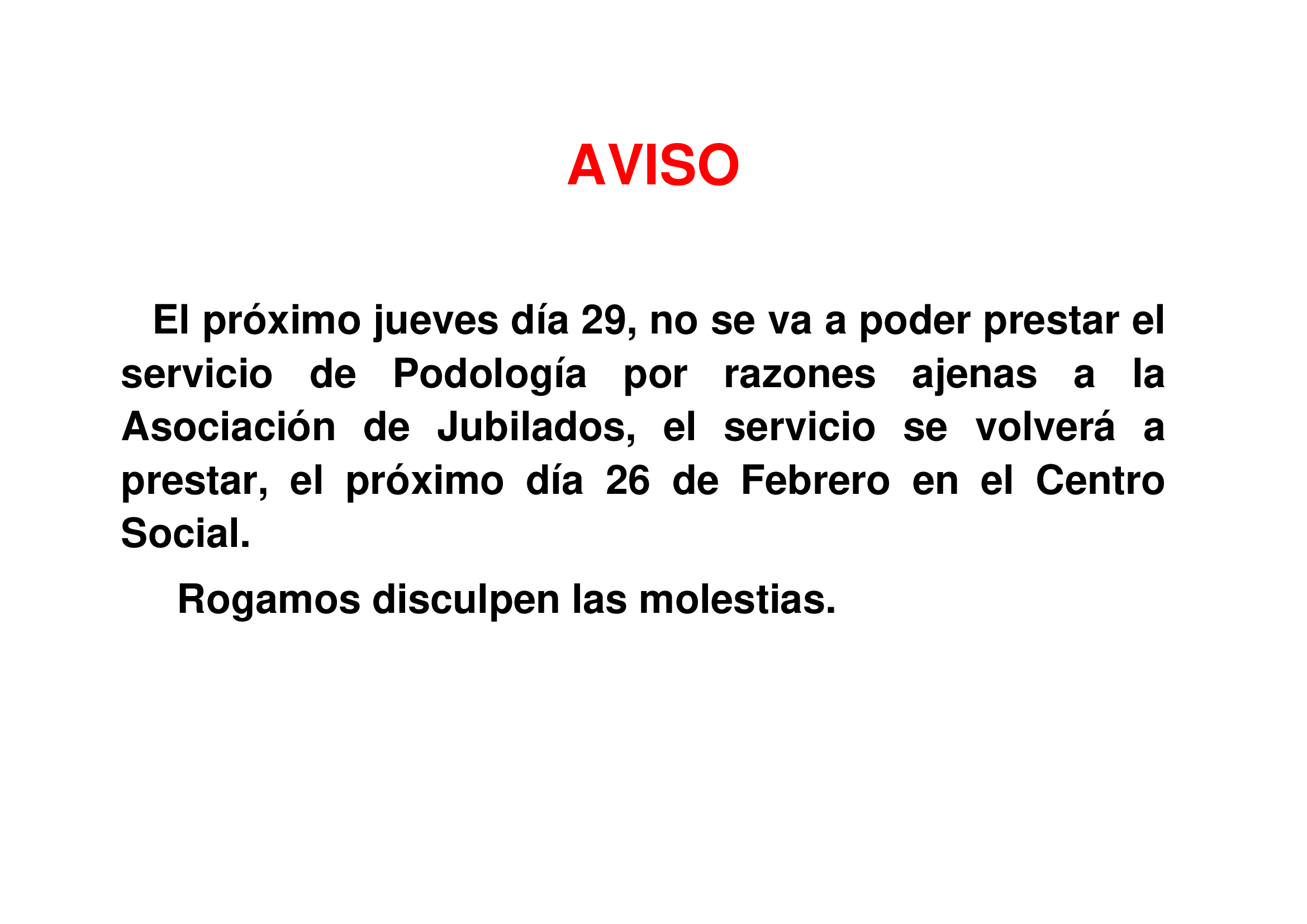 Aviso sobre consulta de podólogo.