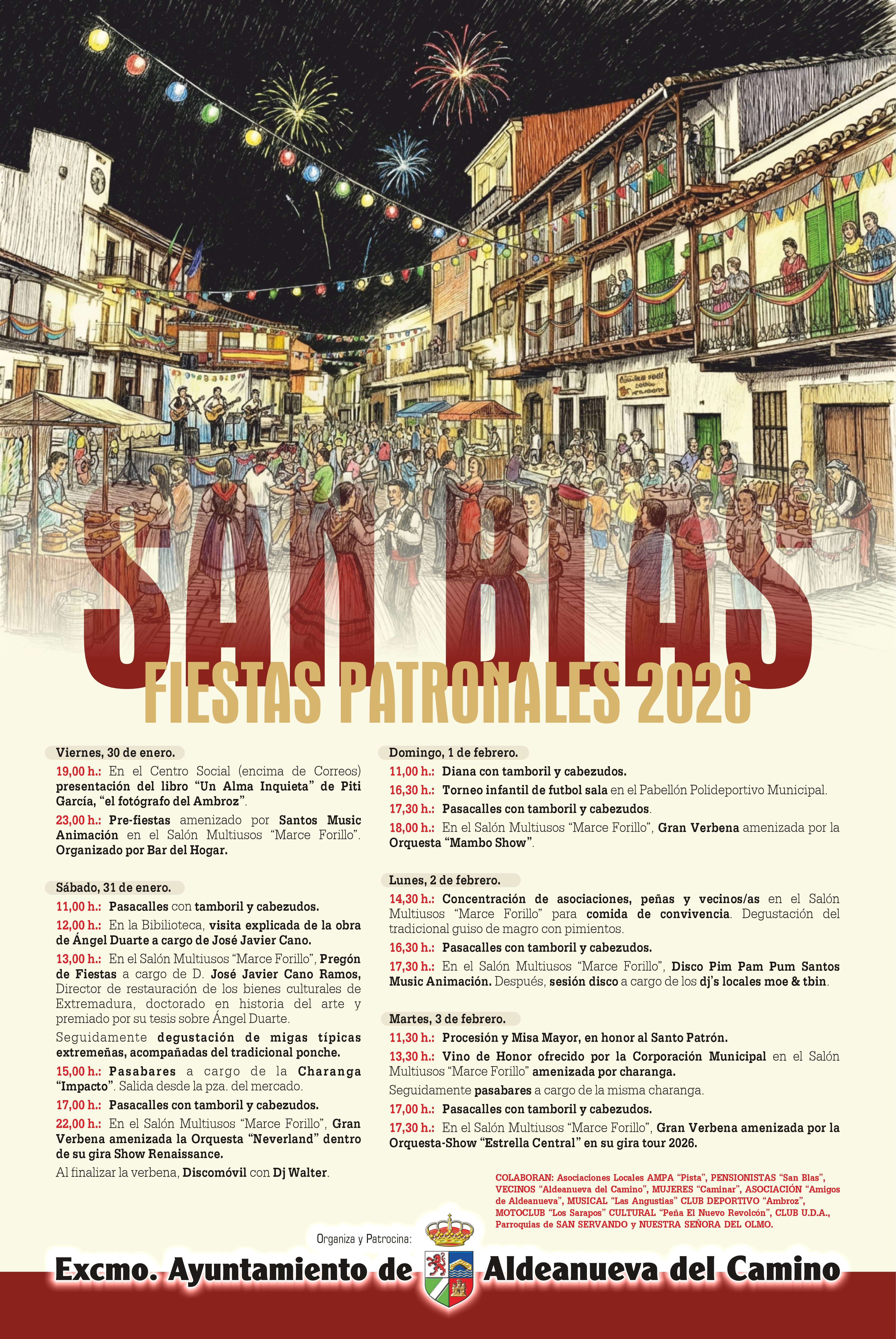 En carteleria adjunta se informa sobre la programación de las fiestas de San Blas