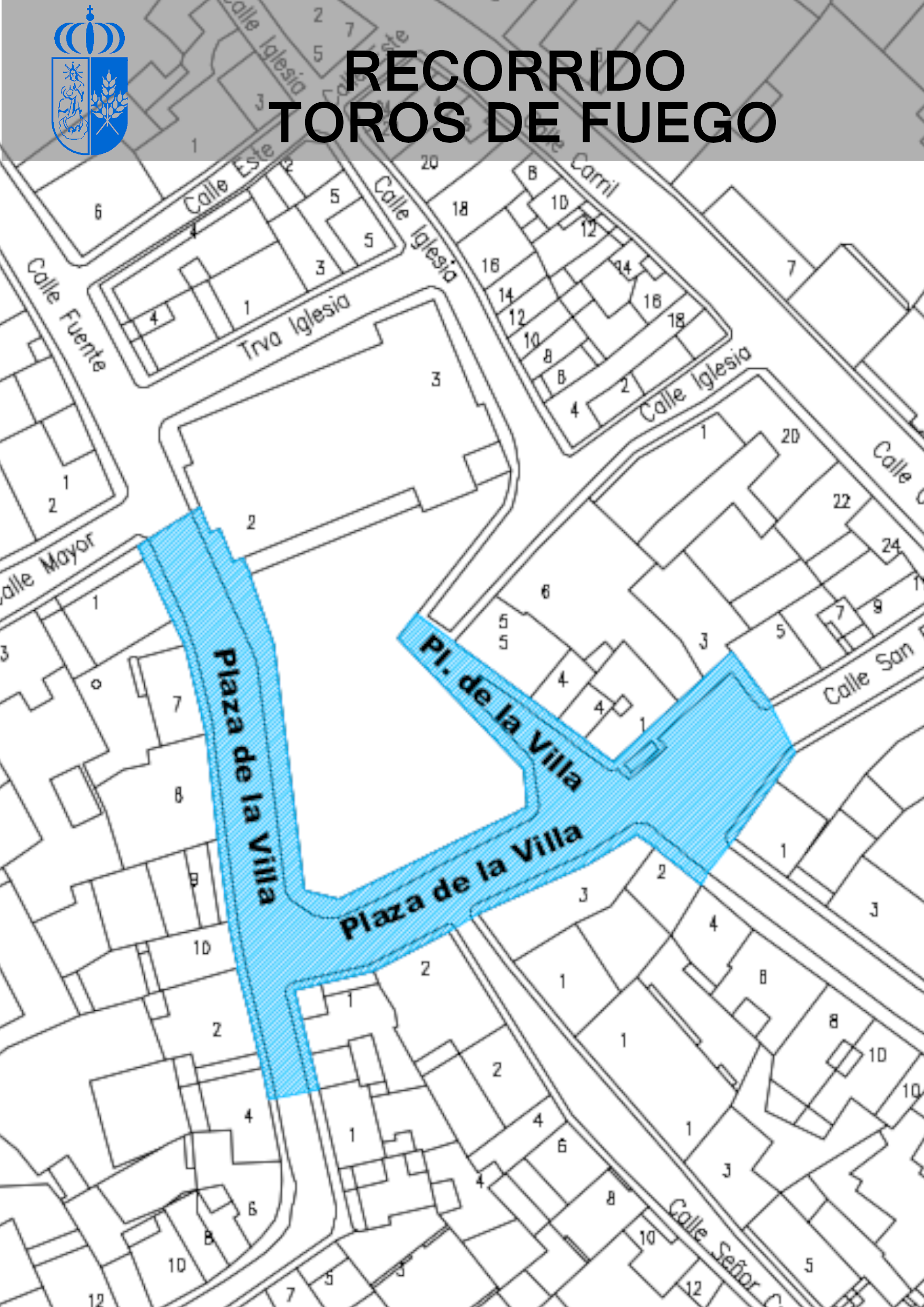 Plaza de la Villa con limite en puerta de la Iglesia; Plazoleta La Solana con limite en esquina C/ San Roque; inicio C/ El Cura; inicio C/ Carlos Ruiz; salida toros C/ Fragua.