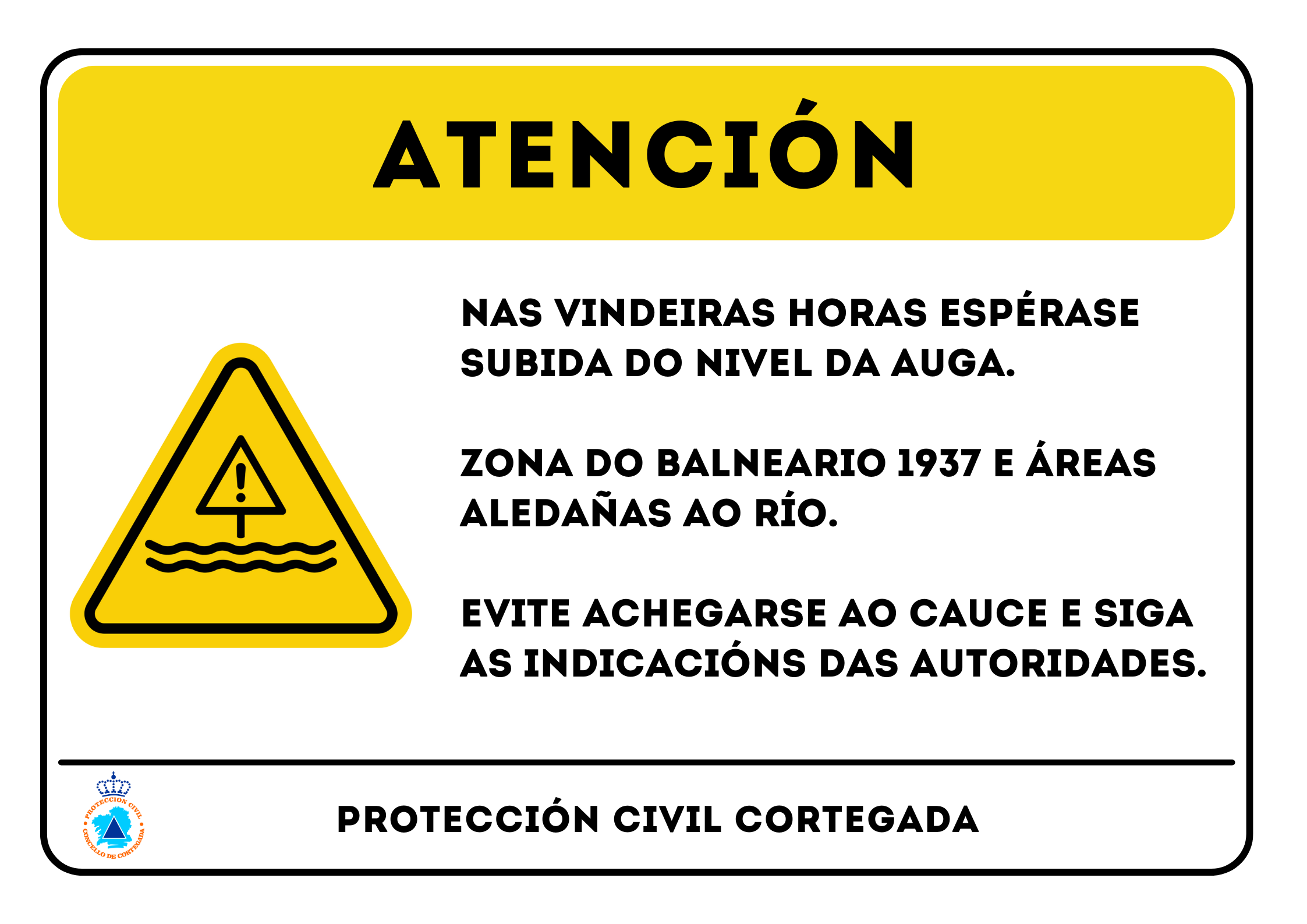 Nas vindeiras horas espérase subida do nivel da auga. Zona do Balneario 1937 e áreas aledañas ao río. Evite achegarse ao cauce e siga as indicacións das autoridades.