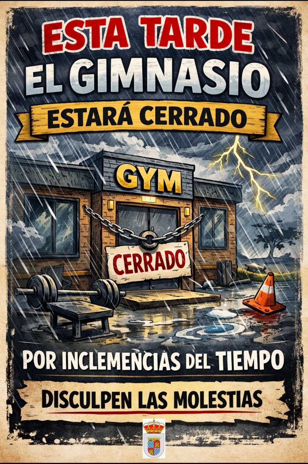 📢 ESTA TARDE EL GIMNASIO ESTARÁ CERRADO.