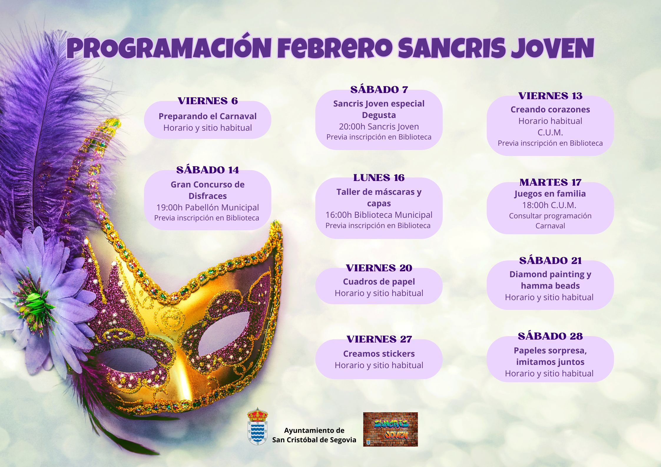 ¡Febrero llega cargado de creatividad, diversión y espíritu carnavalero en SancrisJoven! ✨🎭