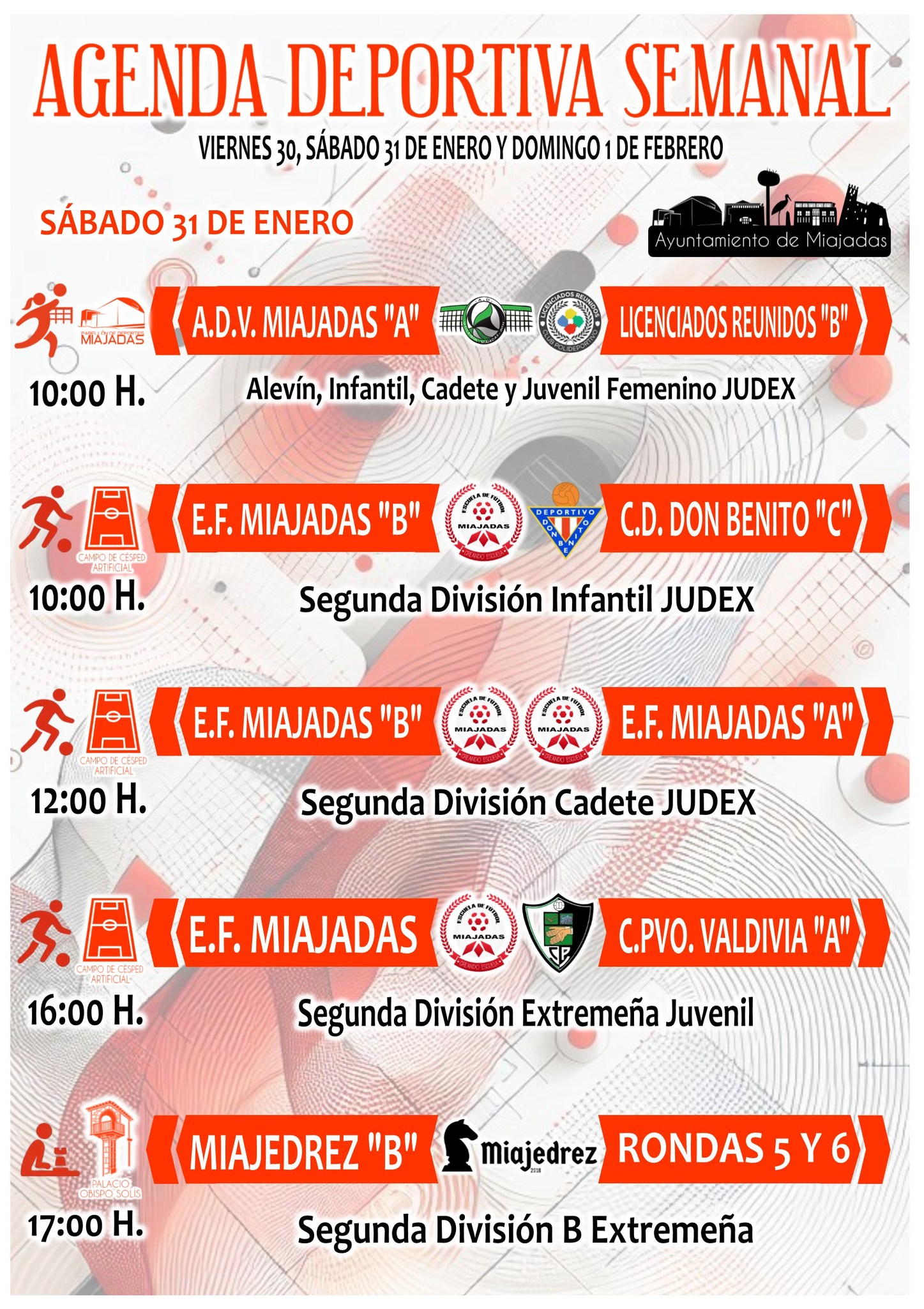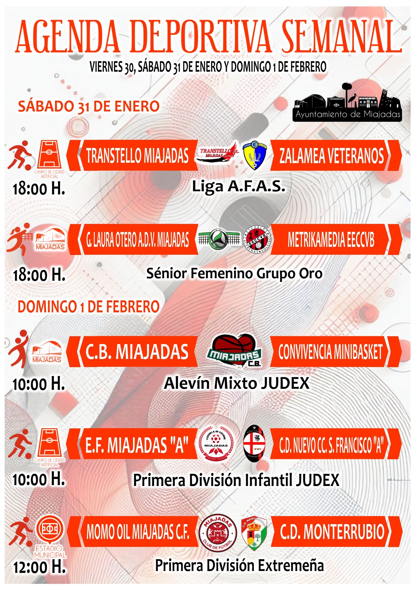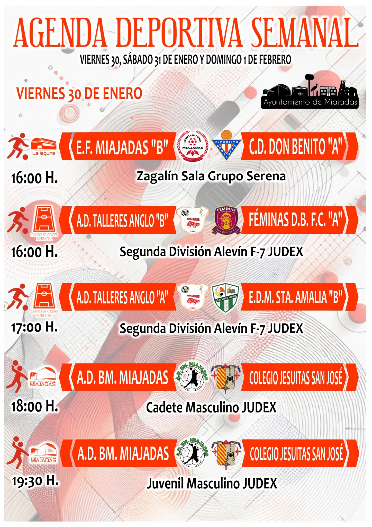 Os dejamos, adjunta en 3 documentos, la relación de encuentros deportivos a disputarse en Miajadas, este fin de semana.