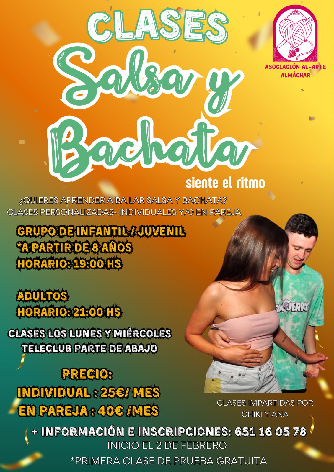 La Asociación Al-Arte pone en marcha nuevas clases de Salsa y Bachata, dirigidas a niños, jóvenes y adultos, con un ambiente cercano y divertido.