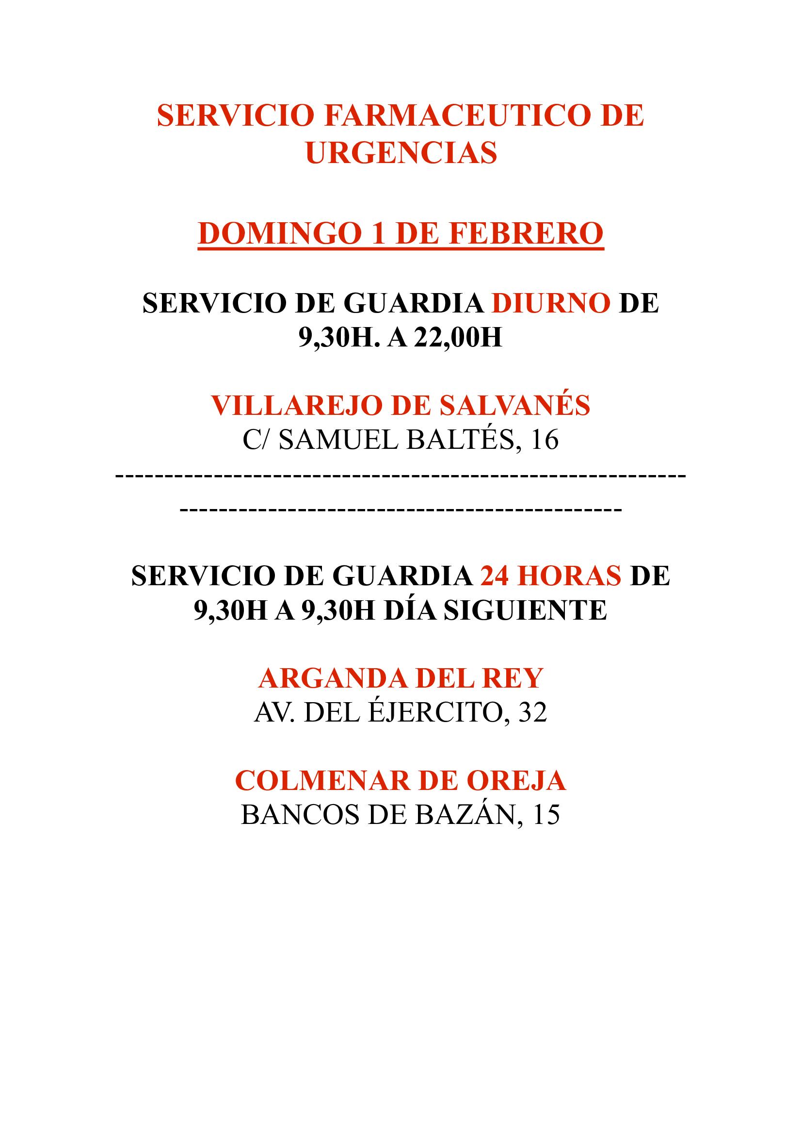 Estás son las farmacias de guardia para el 1 de Febrero.