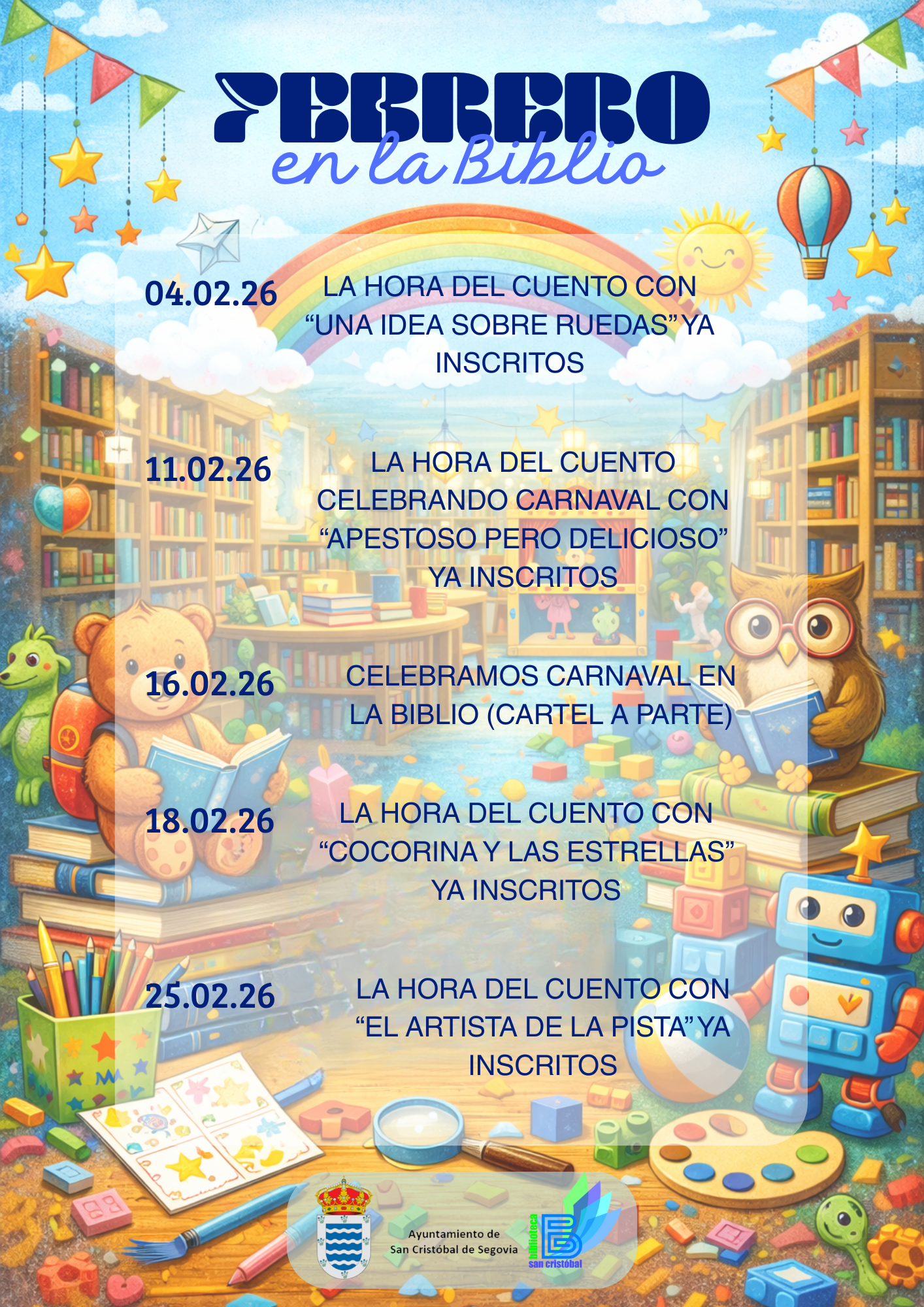 📚✨ ¡Febrero llega cargado de magia en la biblioteca! ✨📚🎉 Ya tenemos listo el cartel de actividades y no podemos esperar a que lo veas 😍📖❤️ Ven, participa, disfruta y comparte momentos únicos con nosotros.