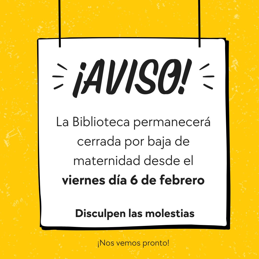 La Biblioteca María Moreno, "La Lengua de las Mariposas", permanecerá cerrada por baja de maternidad desde el viernes día 6 de febrero. Disculpen las molestias.