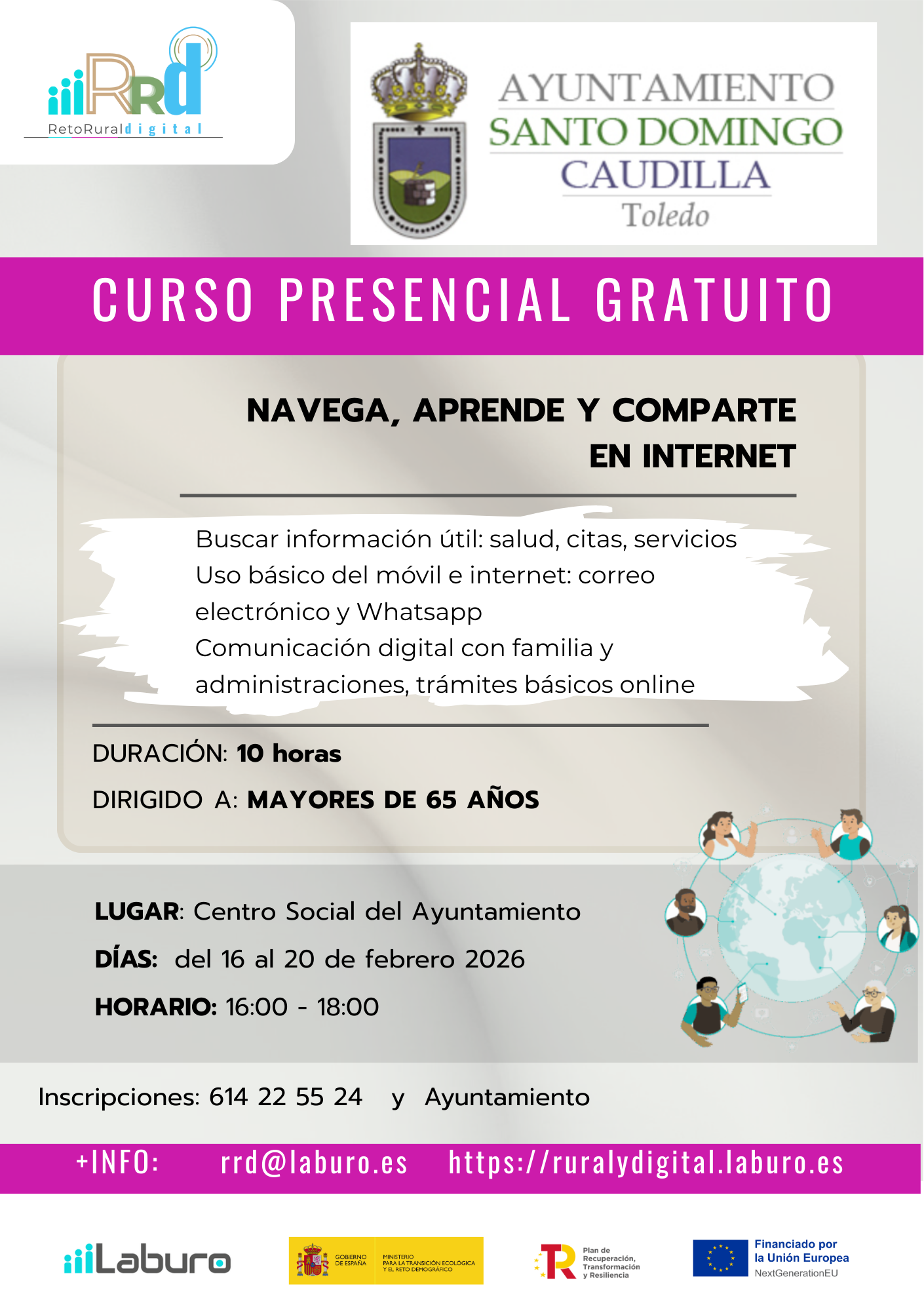 馃摙 El Ayuntamiento ofrece un curso presencial gratuito dirigido a personas mayores de 65 a帽os: 芦Navega, aprende y comparte en Internet禄.
