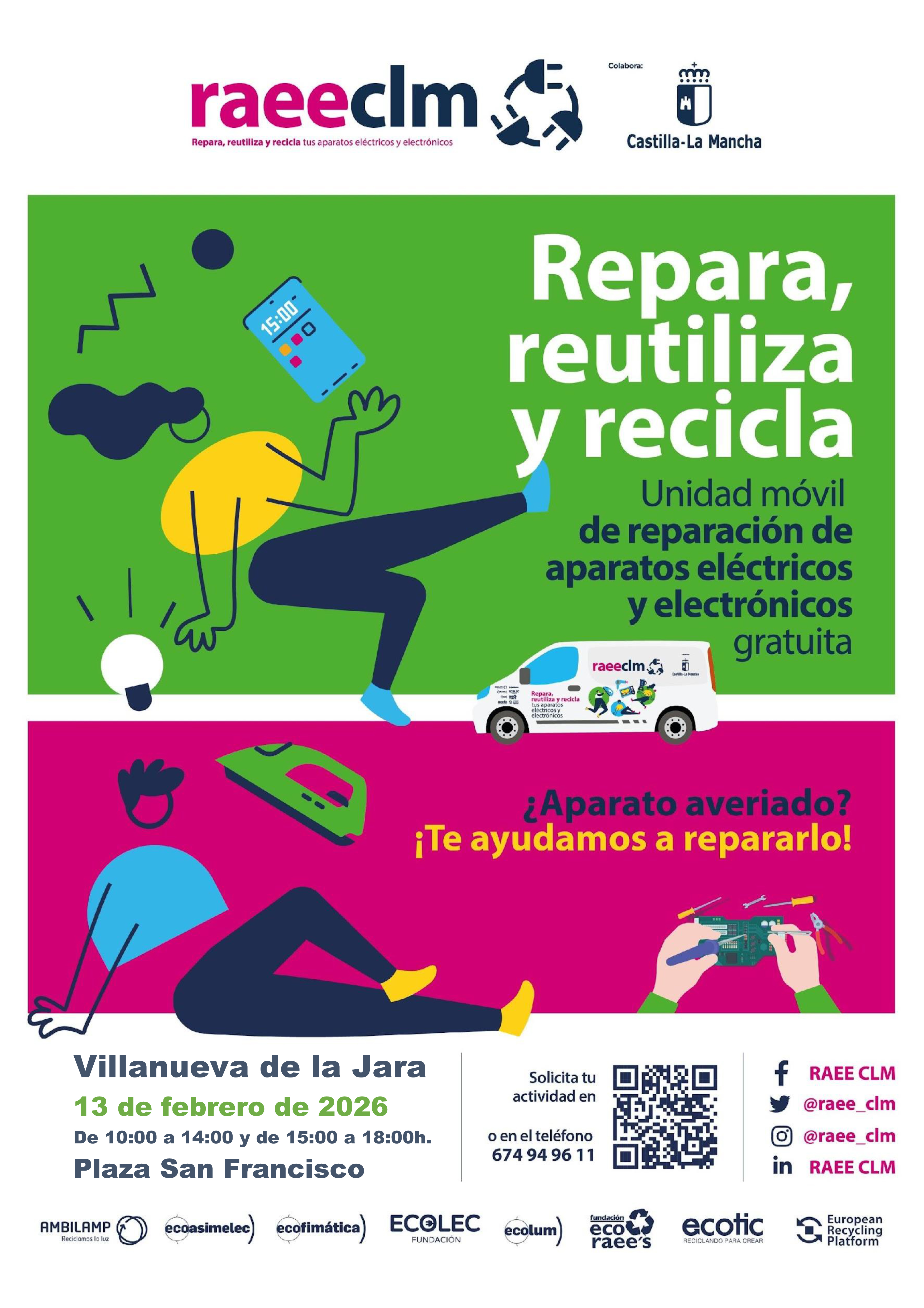 La unidad móvil de reparación de aparatos eléctricos y electrónicos llega a Villanueva de la Jara para ayudarte a dar una segunda vida a esos dispositivos que ya no funcionan.