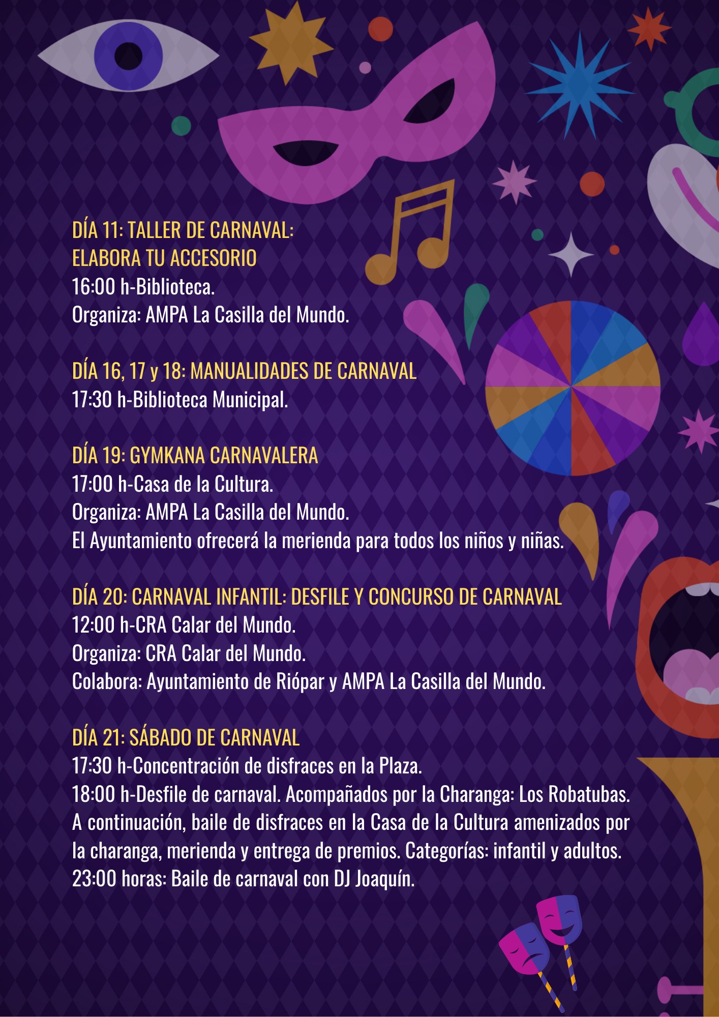 Este primer taller da comienzo a un conjunto de actividades que se desarrollarán desde el lunes 16 hasta el sábado 21, culminando así la programación de nuestro Carnaval.