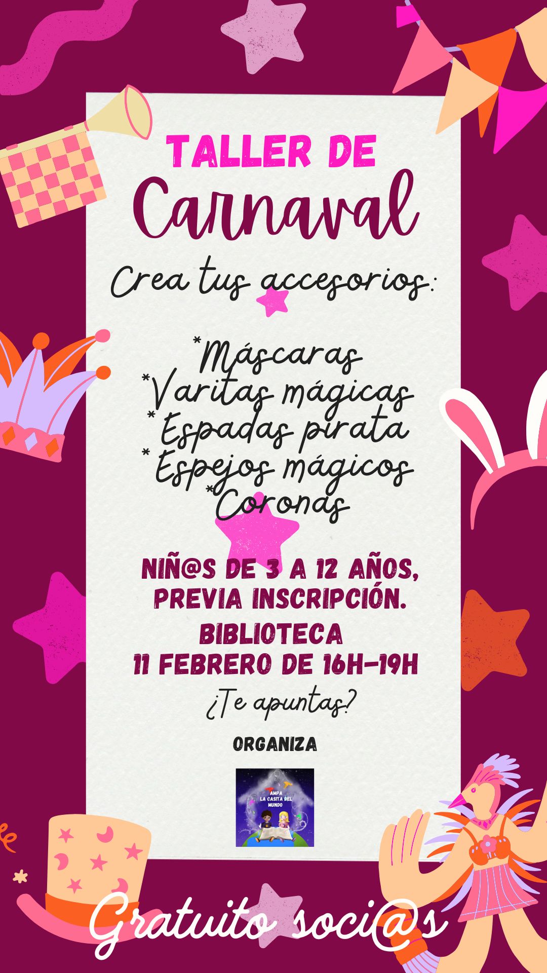 Iniciamos la programación de Carnaval con un taller de accesorios de carnaval, un espacio lleno de creatividad y arte dirigido a los más pequeños.