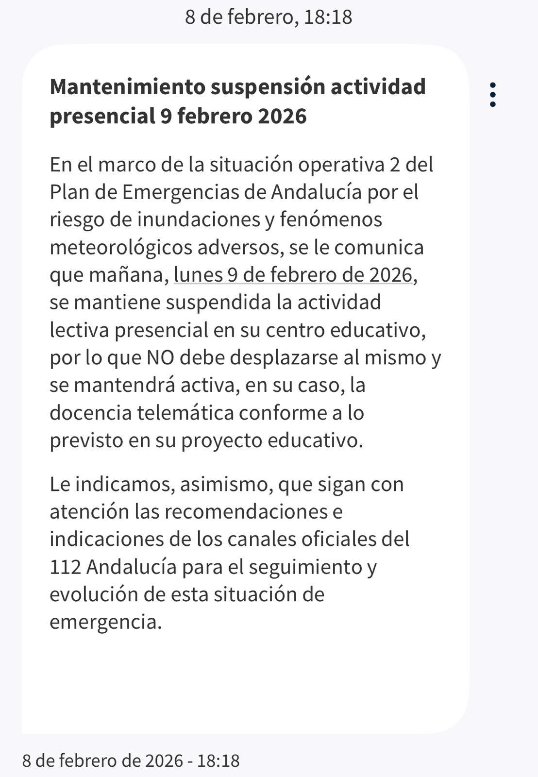 INFORMACIÓN: mañana lunes la actividad lectiva del colegio seguirá suspendida.Los edificios municipales seguirán cerrados.