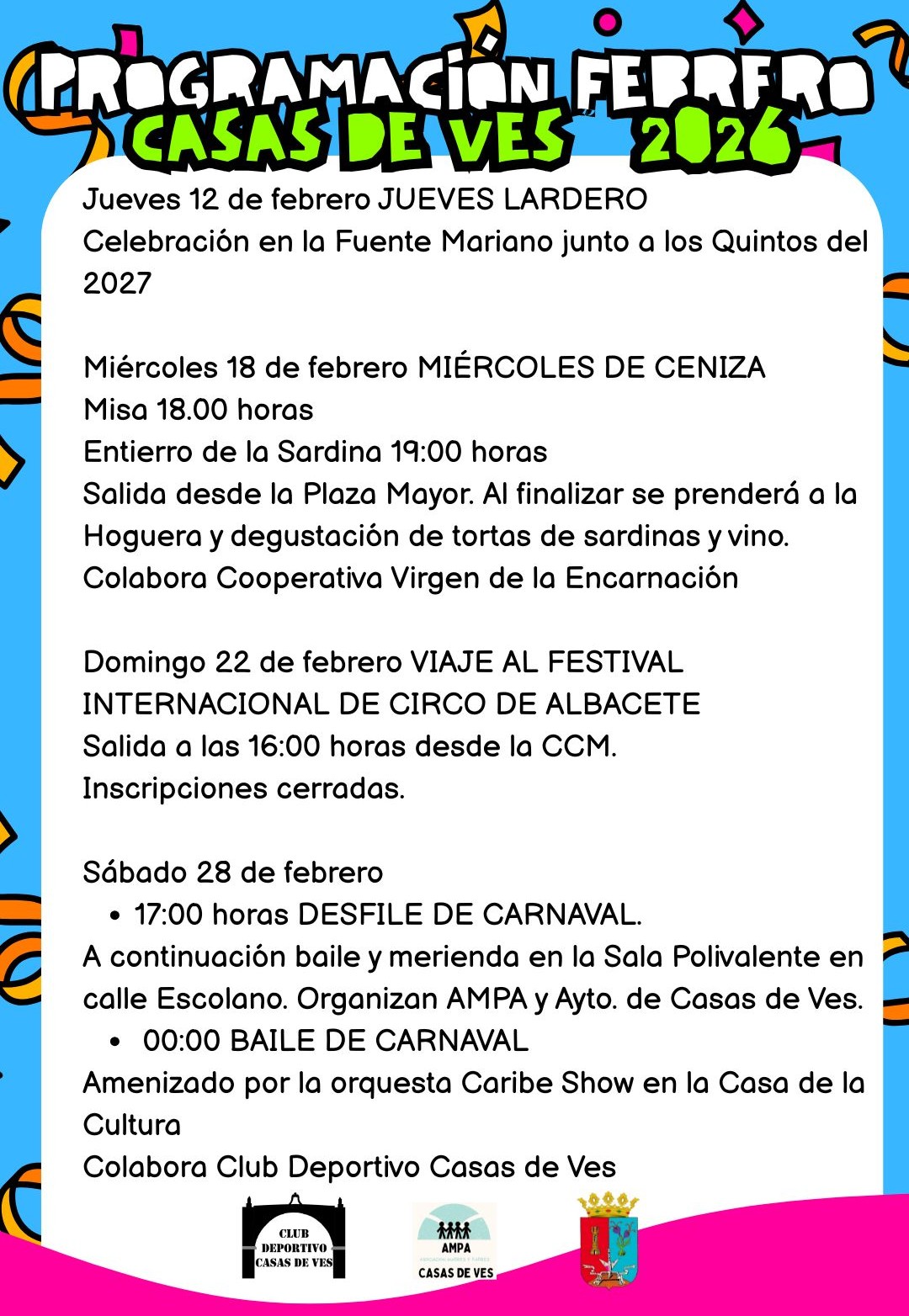 Os informamos de las actividades previstas para este mes de febrero en Casas de Ves en el archivo adjunto