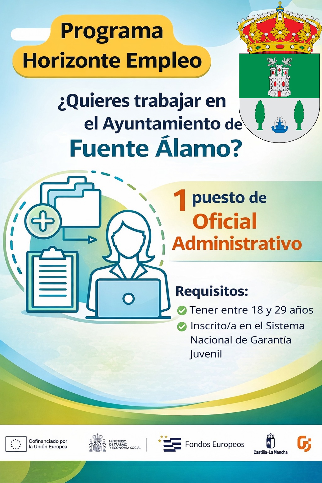 El Ayuntamiento de Fuente Álamo abre la convocatoria para contratar a un Oficial Administrativo.