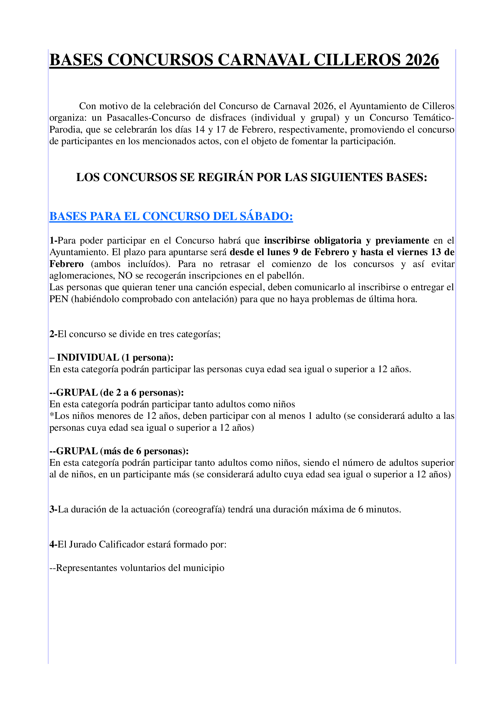 HASTA LAS 12:00 HORAS DEL VIERNES DÍA 13, ESTARÁ ABIERTO EL PLAZO, PARA APUNTARSE A LOS CONCURSOS DEL CARNAVAL, TANTO PARA SÁBADO COMO PARA EL MARTES (día del Zarrio).