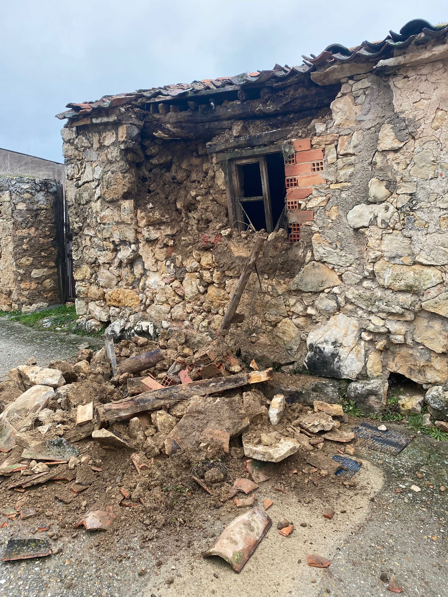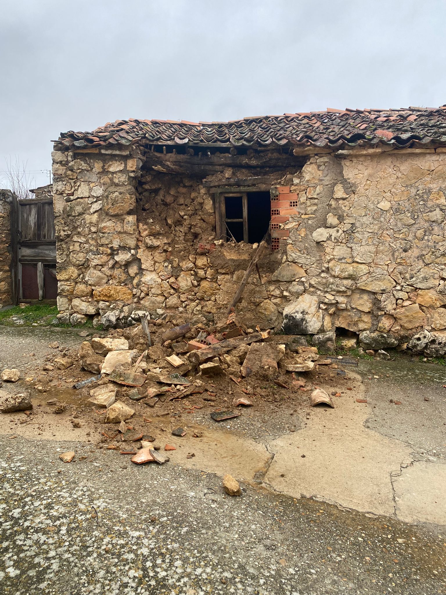 Se informa a los vecinos que una edificación en estado de ruina, situada en Calle Cementerio nº 5, ha sufrido el derrumbe parcial de su estructura, afectando a la vía pública.