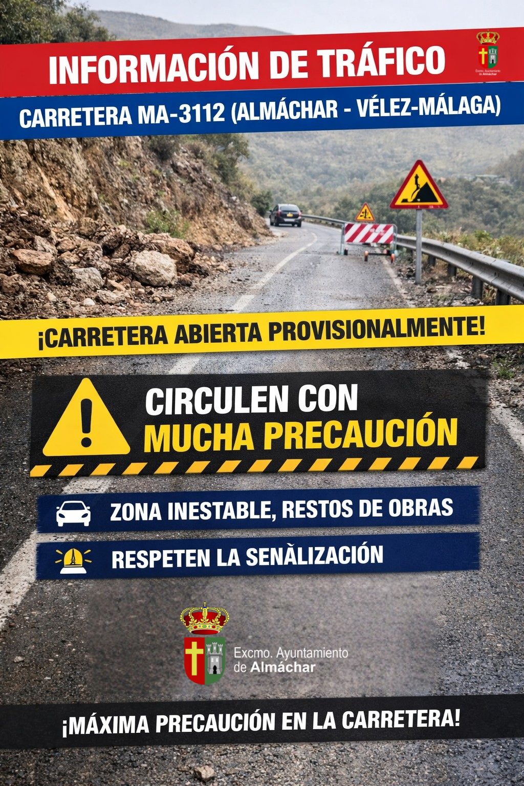 📢 INFORMACIÓN DE TRÁFICO – CARRETERA MA-3112 (ALMÁCHAR – VÉLEZ-MÁLAGA)