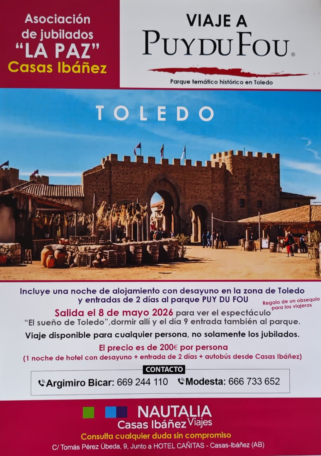 La Asociación de Jubilados “La Paz” de Casas Ibáñez organiza un viaje espectacular al parque temático histórico Puy du Fou.