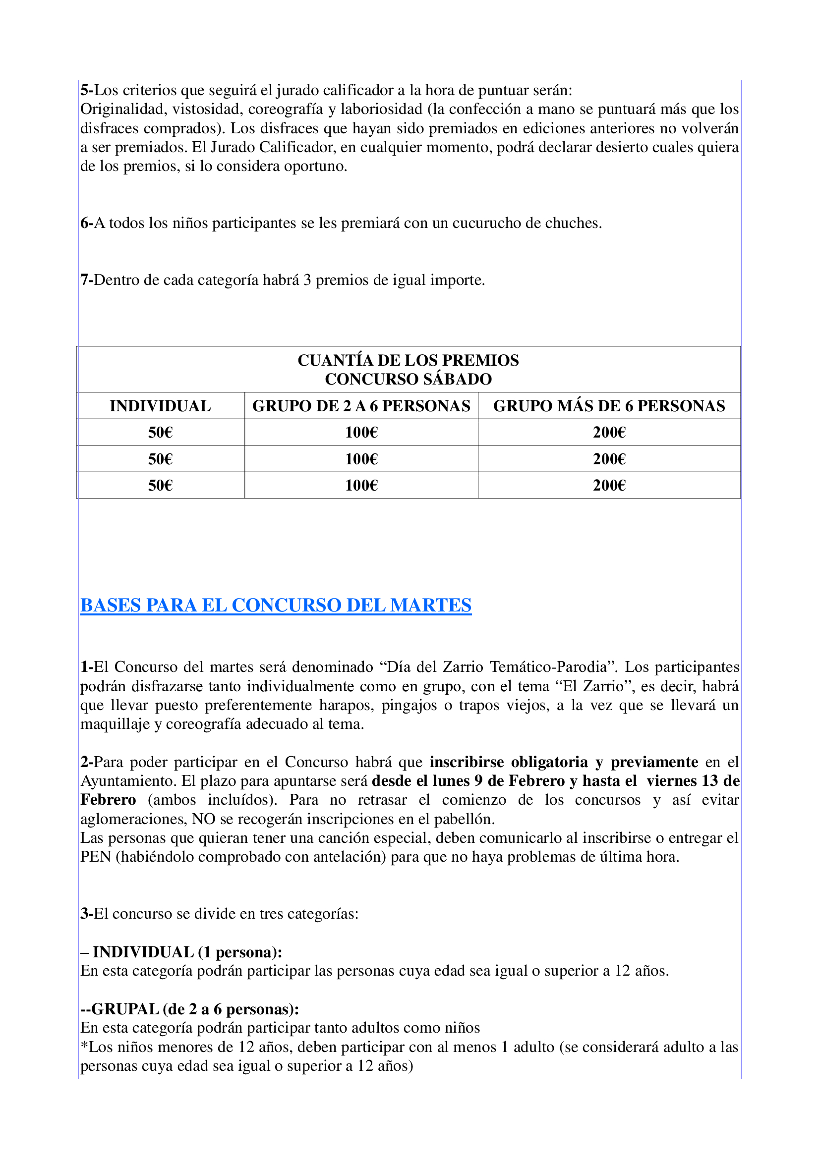 HASTA LAS 12:00 HORAS DE HOY VIERNES DÍA 13, ESTARÁ ABIERTO EL PLAZO, PARA APUNTARSE A LOS CONCURSOS DEL CARNAVAL, TANTO PARA SÁBADO COMO PARA EL MARTES (día del Zarrio).