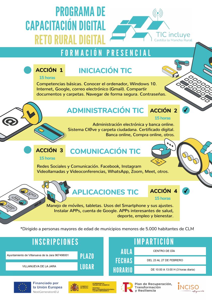 Villanueva de la Jara acoge el Programa de Capacitación Digital – Reto Rural Digital, una formación presencial pensada para mejorar tus competencias tecnológicas de forma sencilla y práctica.