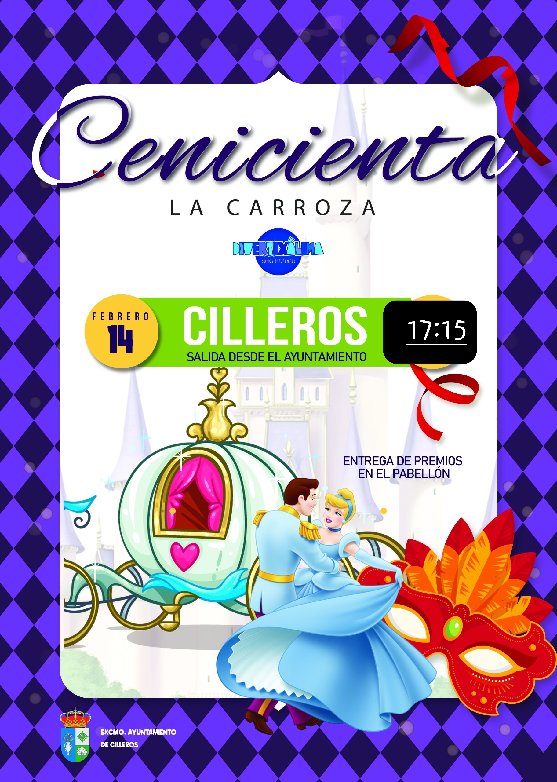 AYUNTAMIENTO DE CILLEROS INFORMA:HOY SÁBADO 14 DE FEBRERO, DURANTE EL RECORRIDO DEL PASACALLE DEL CARNAVAL, NOS ACOMPAÑARÁ LA CARROZA DE CENICIENTA. SALIDA: PLAZA DEL AYUNTAMIENTO HORA: 17:15NO TE LO PIERDAS