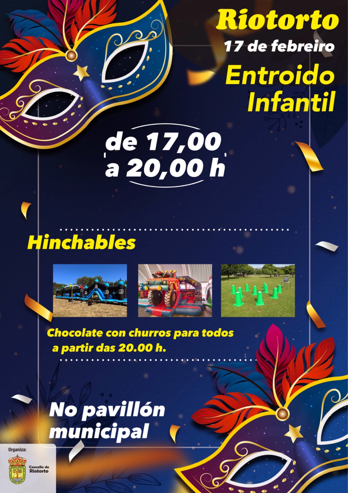 El martes, 17 de febrero, se celebrará el carnaval infantil en el pabellón polideportivo. Habrá hinchables, juegos y animación musical.