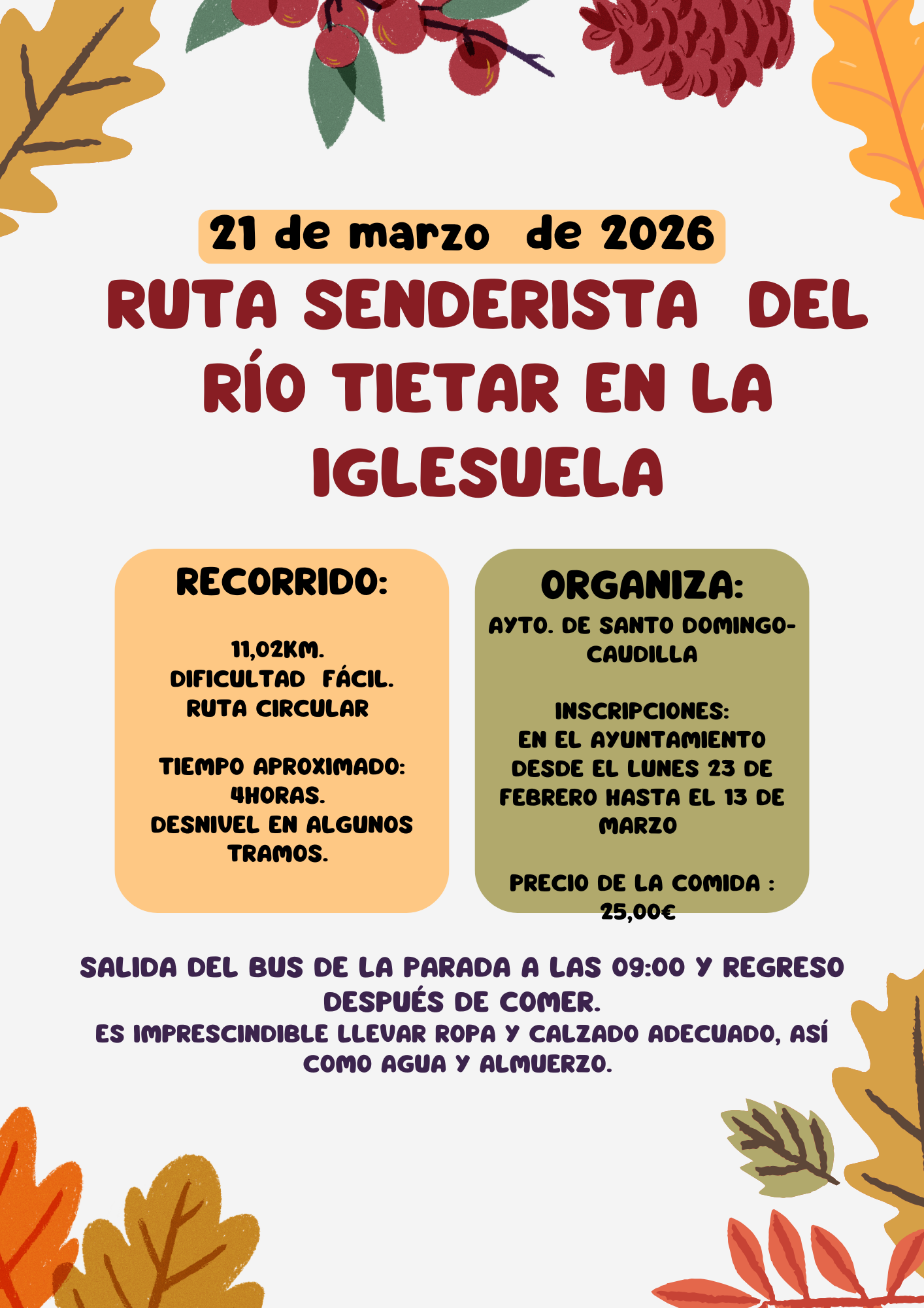 ¡¡¡NUEVA FECHA!!! RUTA SENDERISTA DEL RÍO TIETAR POR EL MUNICIPIO DE LA IGLESUELA