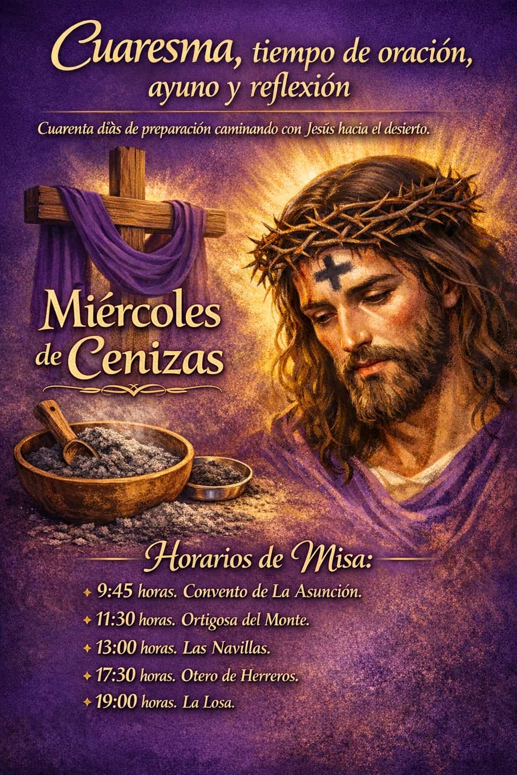 Se informa del horario de misa para mañana 18 de febrero, miércoles de ceniza.