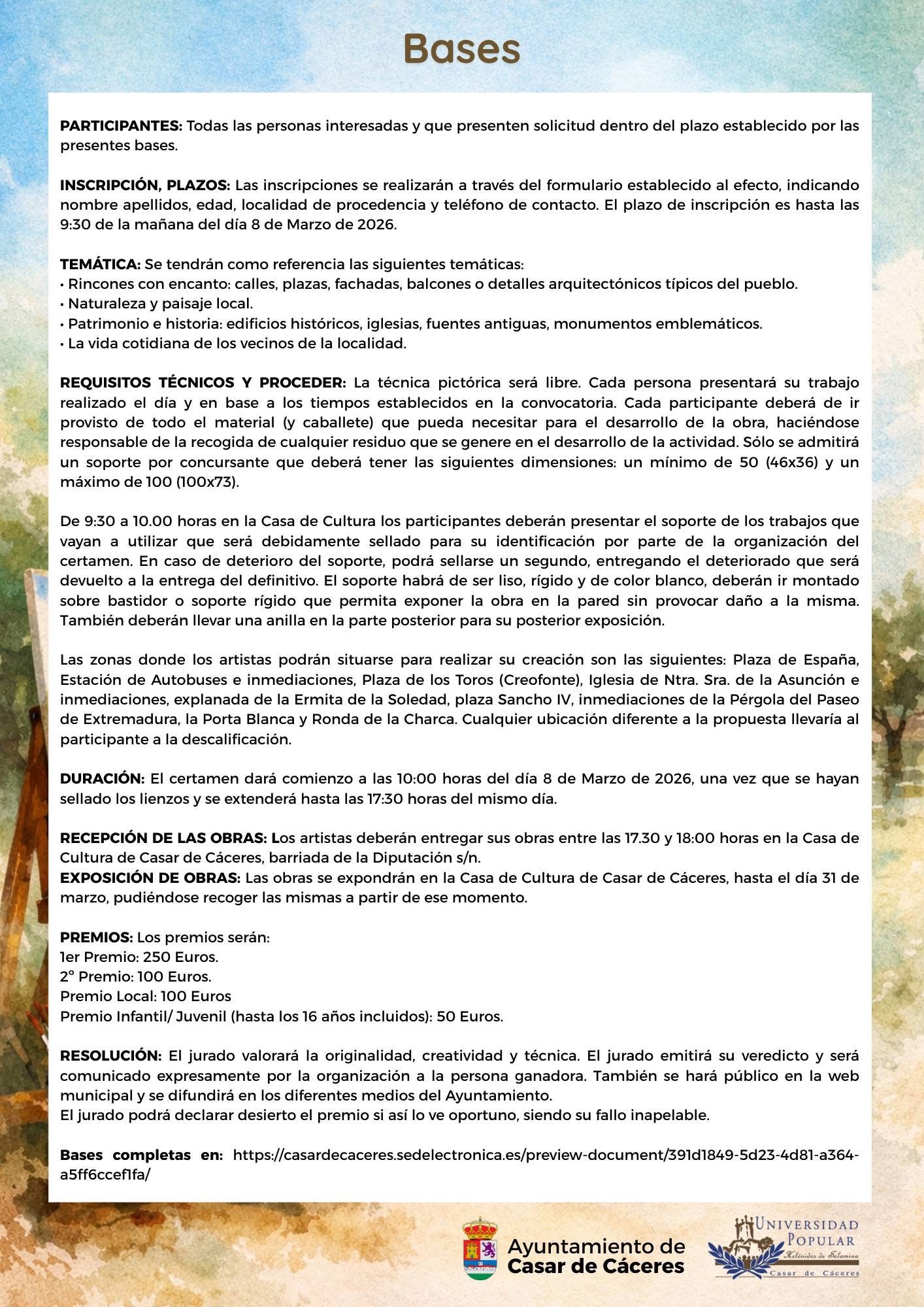 🎨🖌️ Este 8 de Marzo, Día Internacional de la Mujer, rendimos homenaje a Angelita Capdevielle Borrella, hija predilecta del pueblo, con el I Concurso de Pintura al Aire Libre "Angelita Capdevielle" 2026
