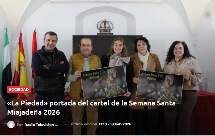 En la jornada de ayer, se presentaba, en rueda de prensa, de la mano de la Junta de Cofradías y la Comunidad Parroquial. Para conocer todos los detalles, no dejes de visitar el siguiente enlace a nuestro medio local municipal: https://rtvmiajadas.es/la-piedad-portada-del-cartel-de-la-semana-santa-miajadena-2026/?fbclid=IwY2xj...