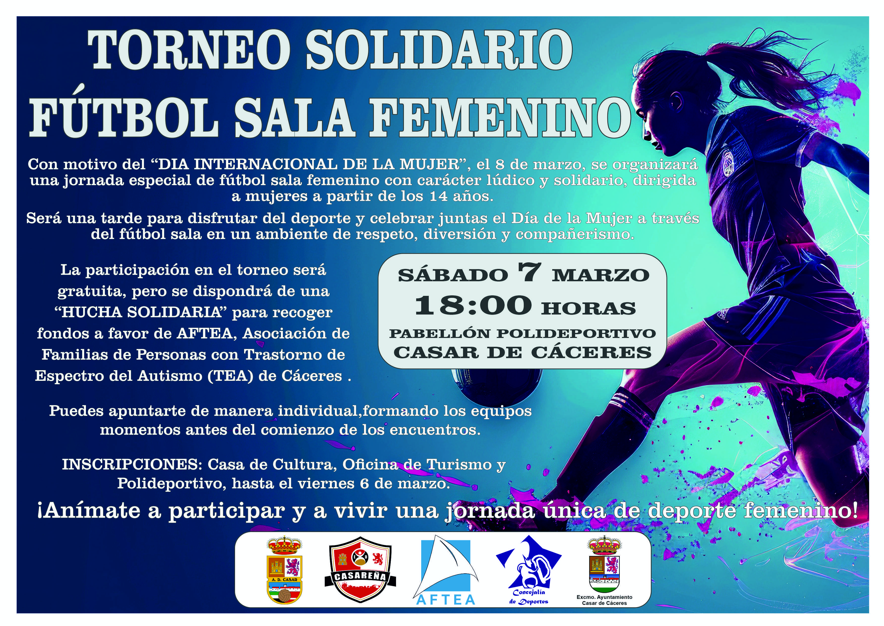 El torneo se desarrollará en la tarde del sábado 7 de marzo a partir de las 18:00 horas y pretende ser una tarde para disfrutar del deporte y celebrar juntas el Día de la Mujer, a través del fútbol sala, en un ambiente de respeto, diversión y compañerismo.