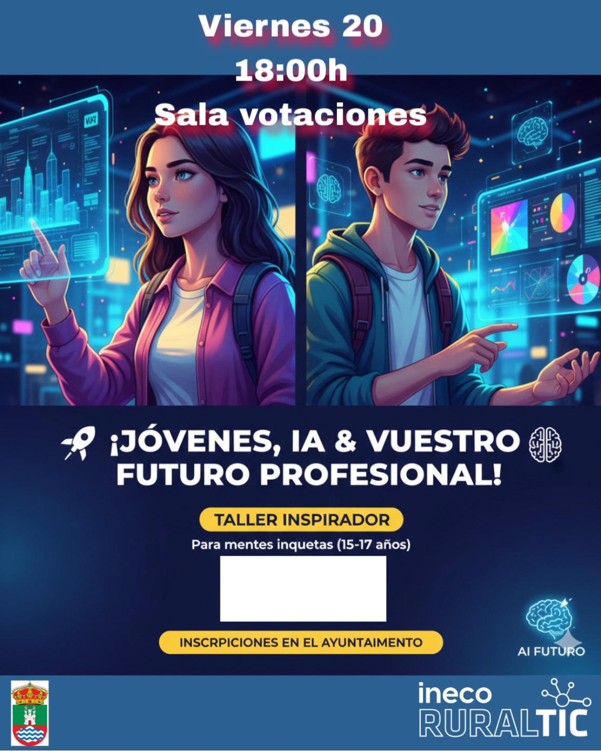 Taller IA para jóvenes de 15-17 añosViernes 20 de febreroSala de votaciones18:00 horas