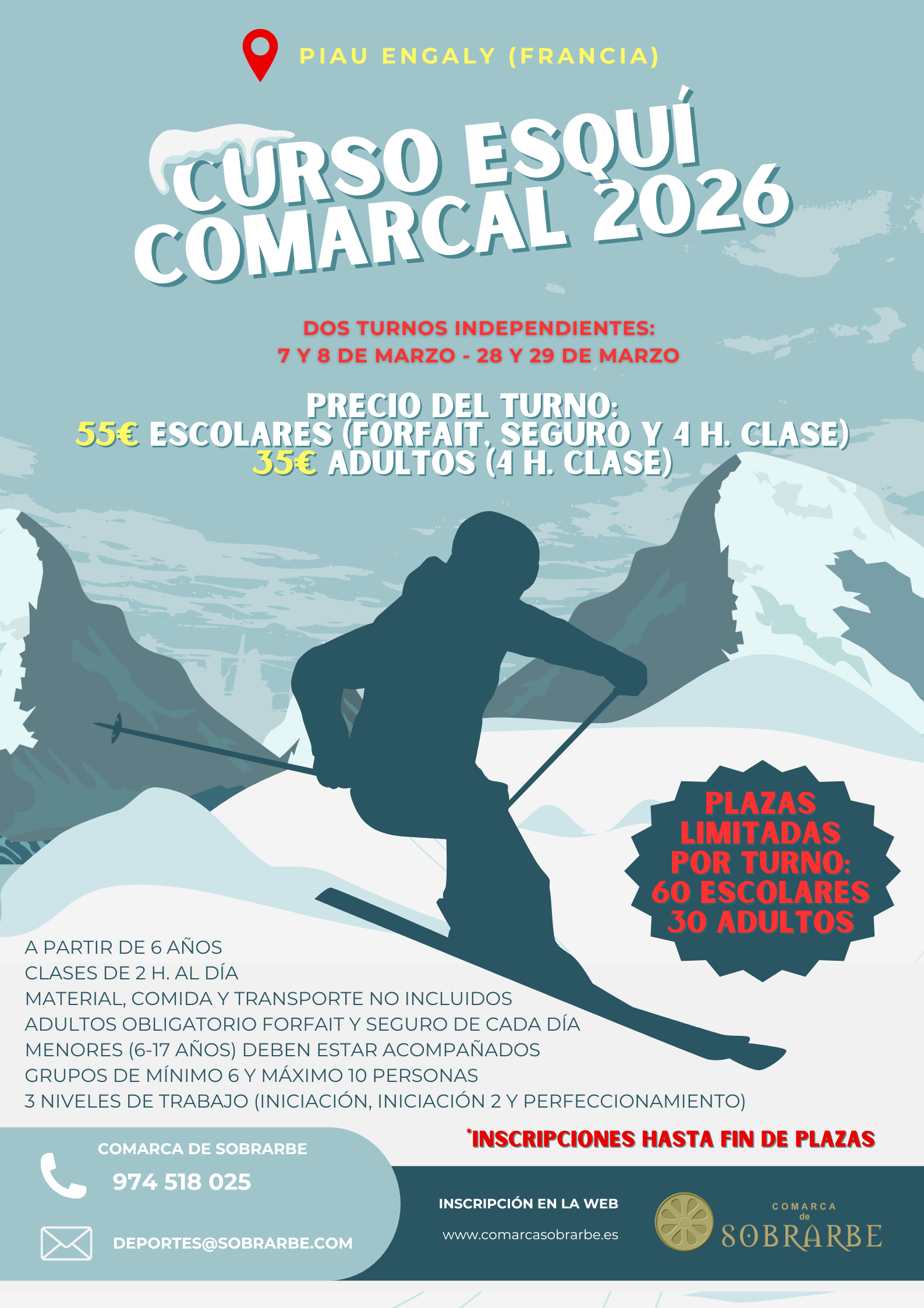 ℹ️ El Servicio de Deportes de la Comarca de Sobrarbe informa sobre el curso de esquí comarcal que se celebrará en la estación de Piau Engaly.