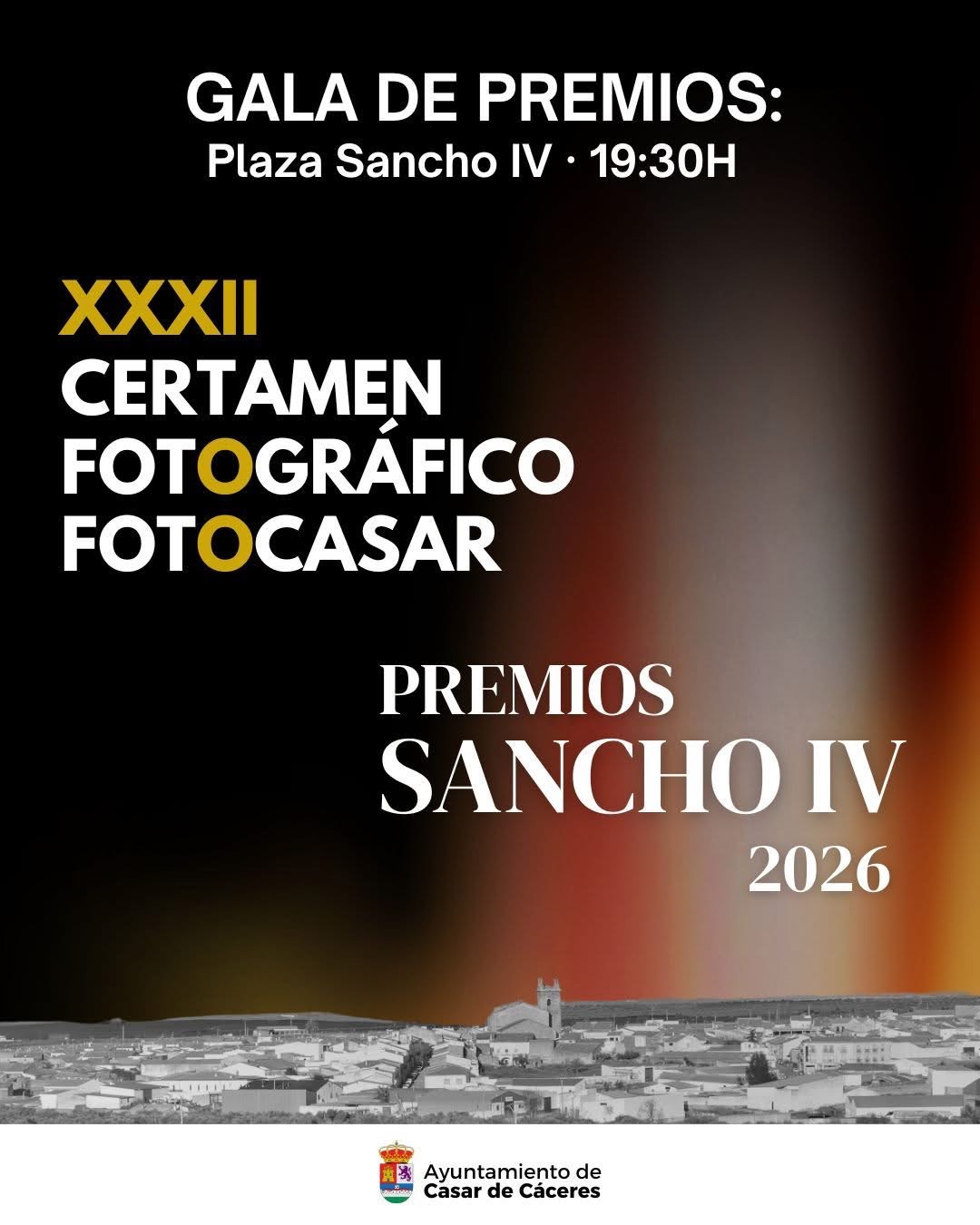 🏆 HOY Gala de Premios del XXXII Certamen Fotográfico FOTOCASAR y Premios Sancho IV 2026Con la actuación de la Banda Casar de Cáceres y Coral Cynara Música.📍Plaza Sancho IV⏰ 19:30h#casardecaceres