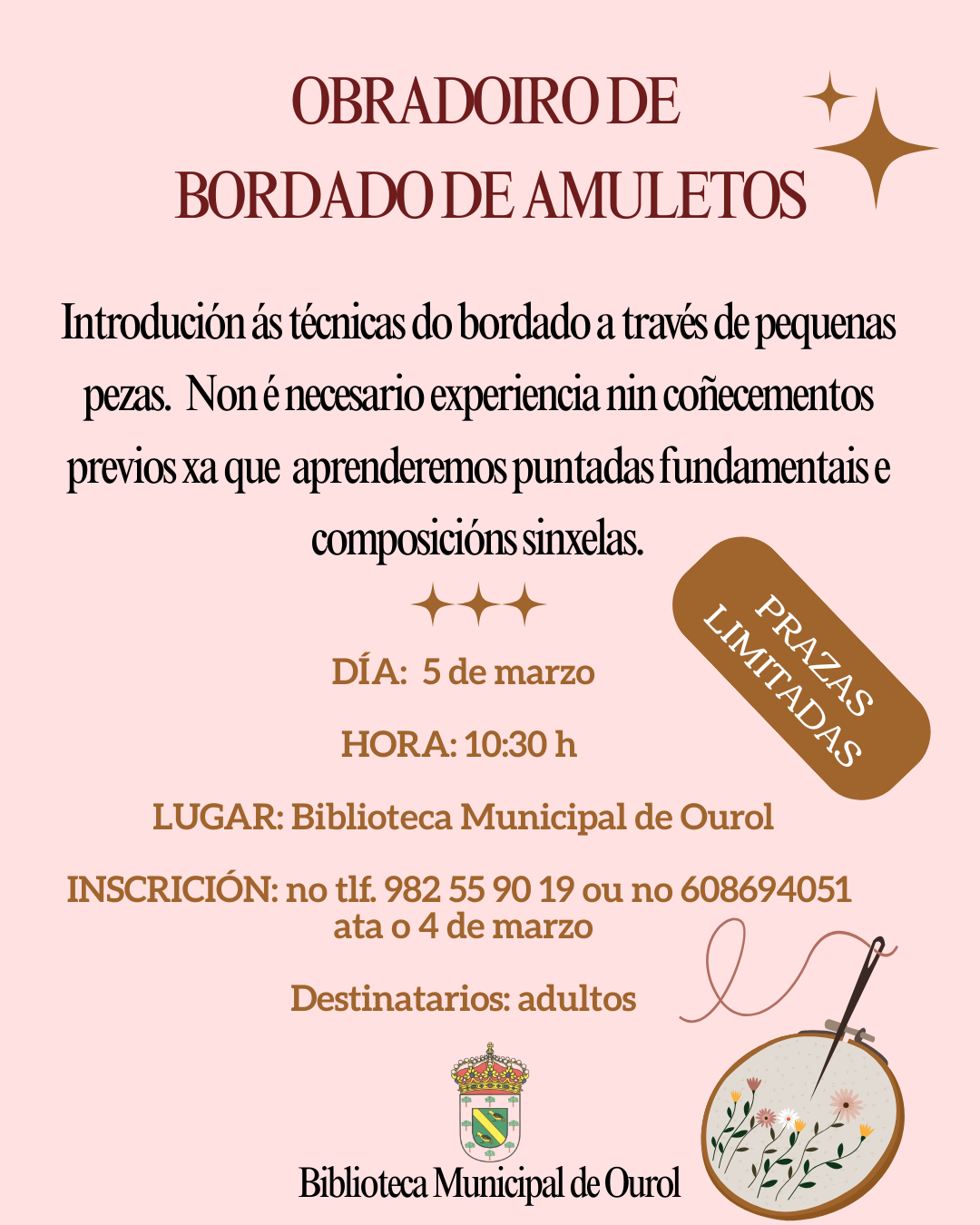 Inscrición: ata o 4 de marzo no teléfono 982 55 90 19 ou no 608694051