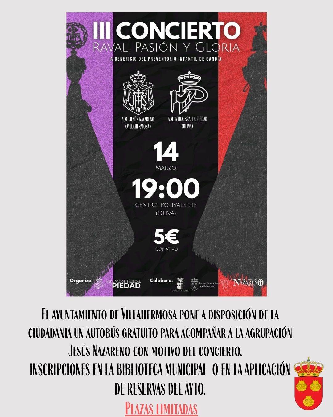 El próximo 14 de marzo, a las 19:00 horas, nuestra Agrupación Musical Jesús Nazareno participará en el III Concierto "Raval, Pasión y Gloria", que se celebrará en el Centro Polivalente de Oliva (Valencia).