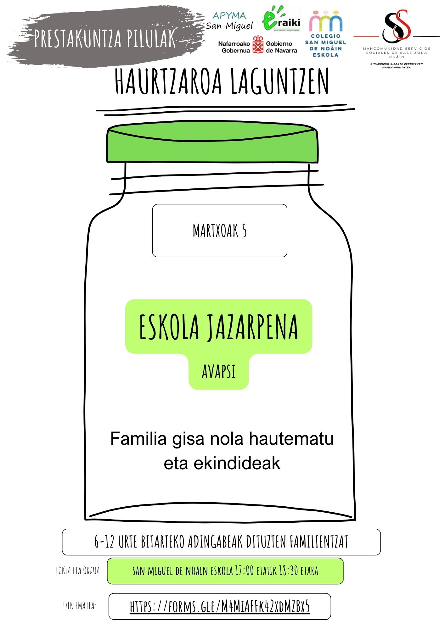 Fecha: Jueves 5 MARZO 2026 Hora: 17:00-18:30 Lugar: Colegio San Miguel, Noáin