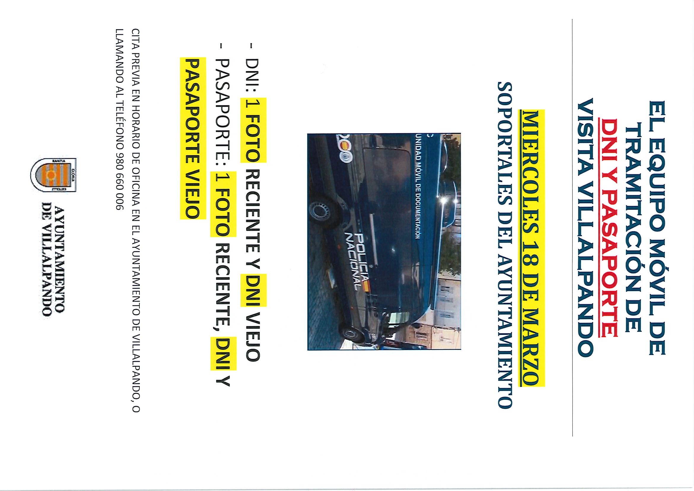 El 18 de marzo, la unidad móvil de tramitación del DNI y Pasaporte estará en Villalpando, pide cita en el Ayuntamiento