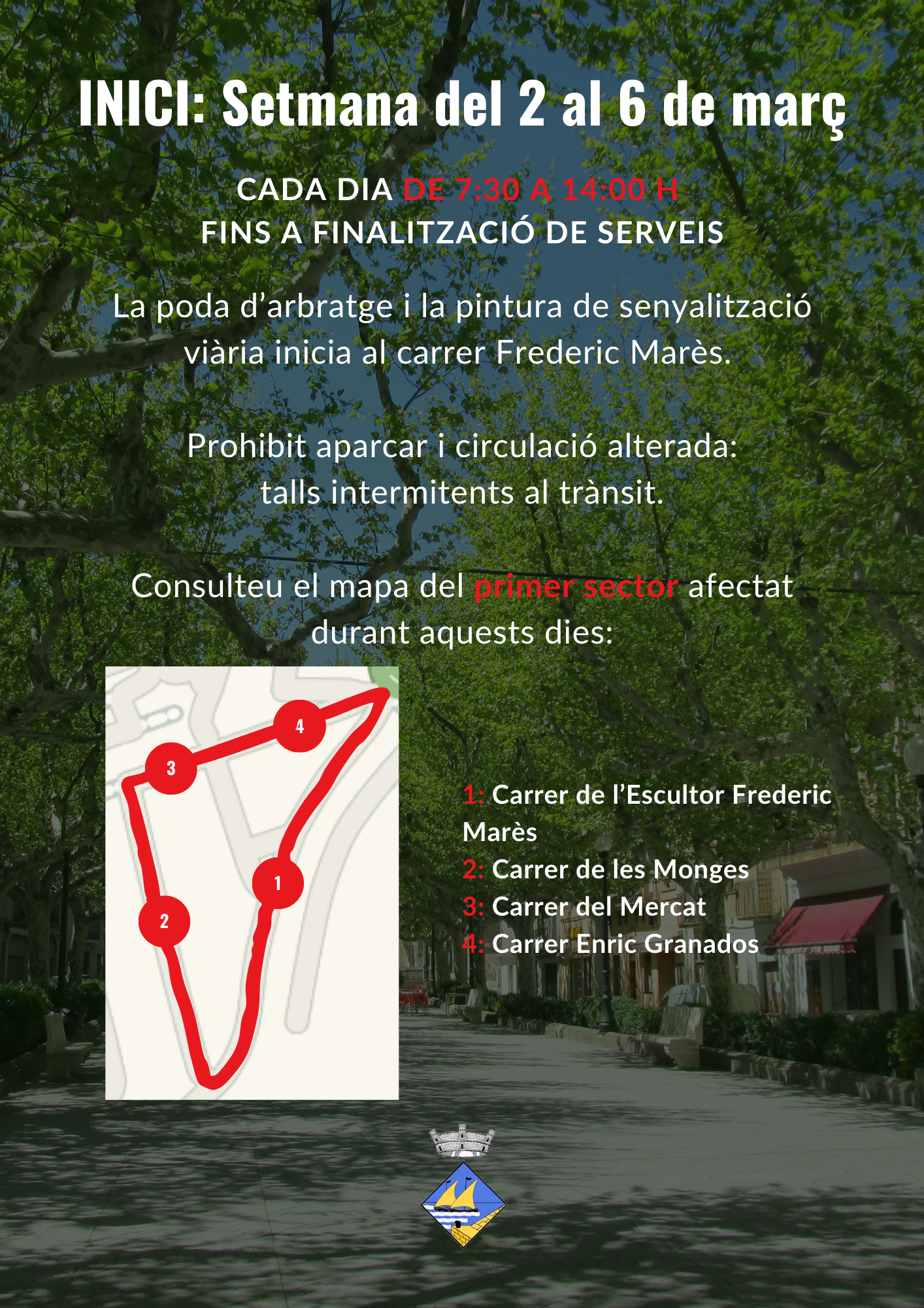 🚫 Durant la prestació d’aquests serveis, quedarà prohibit l’aparcament i la circulació quedarà alterada: el trànsit s’anirà tallant segons les circumstàncies.