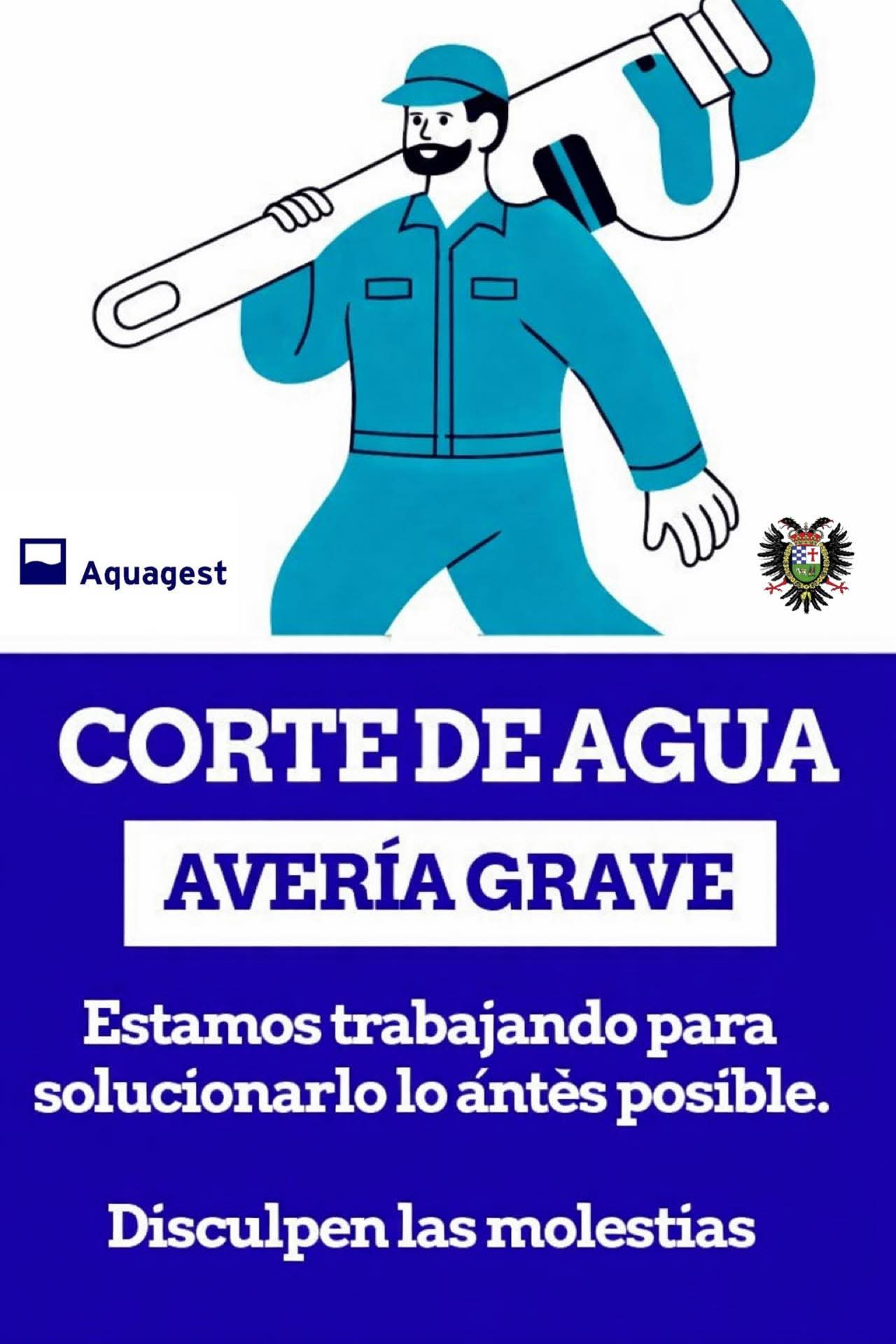 🚧💧 Aviso de avería de aguaDebido a una avería, el suministro de agua queda temporalmente afectado en la zona por encima de la carretera.Estamos trabajando para restablecer el servicio lo antes posible. Disculpen las molestias.