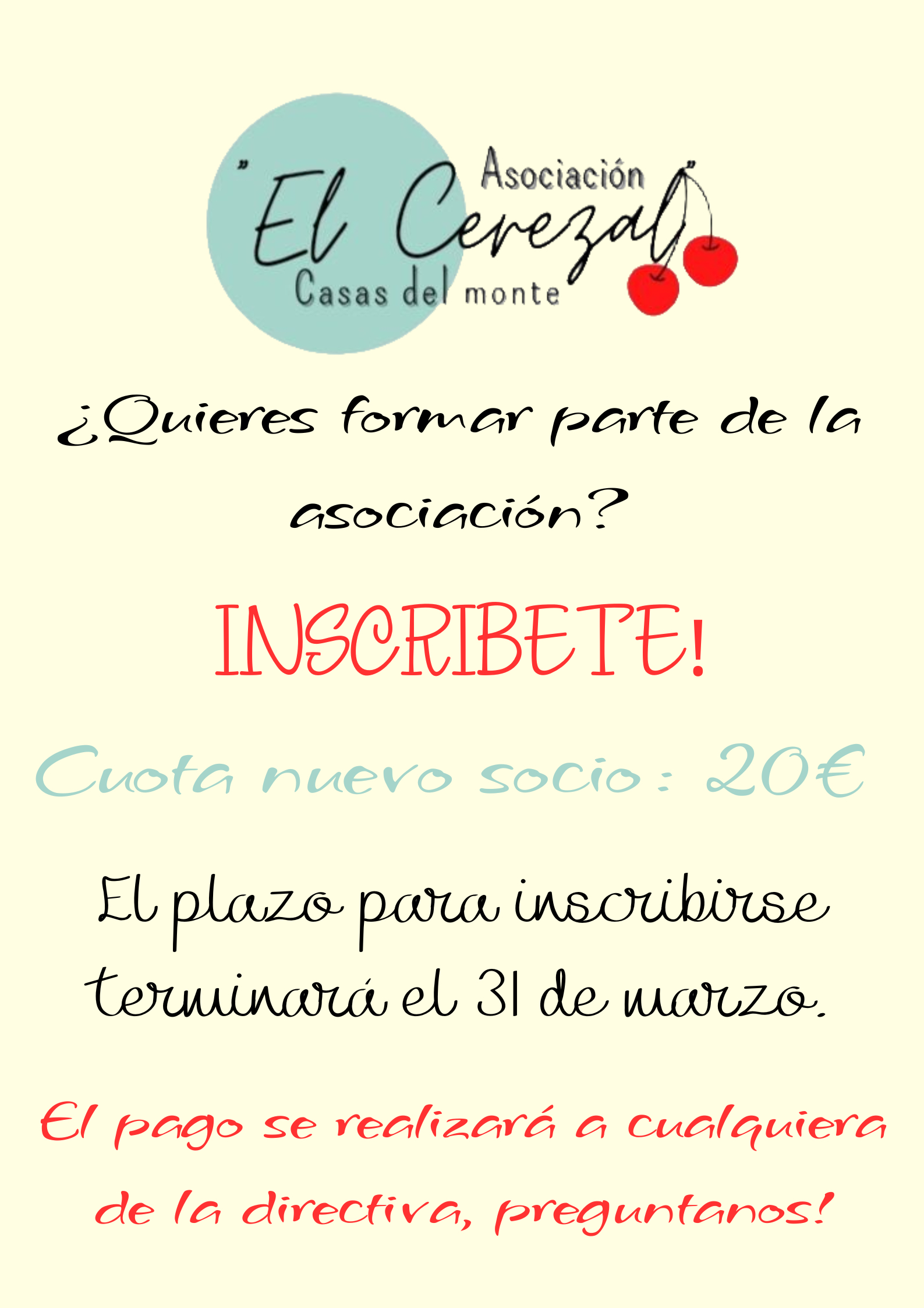 Se informa de que el plazo para inscribirse a la asociación o para pagar la cuota de socio termina el 31 de marzo.Todos aquellos pagos que se realicen después de ese día se incrementarán 5€. Gracias a todos por seguir ayudándonos!