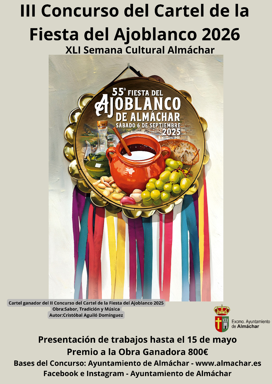 📢 III CONCURSO CARTEL DE LA "FIESTA DEL AJOBLANCO" DE LA XLI SEMANA CULTURAL DE ALMÁCHAR 2026.