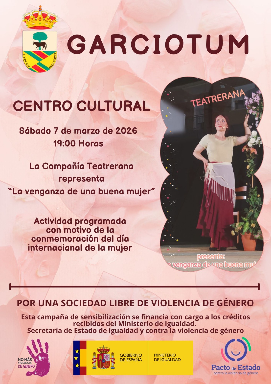 Desde la Asociación de Mujeres junto con el Ayuntamiento nos traen teatro del bueno, del que engancha y no deja indiferente: “La venganza de una buena mujer”. 😏🔥para celebrar el día internacional de la mujer.