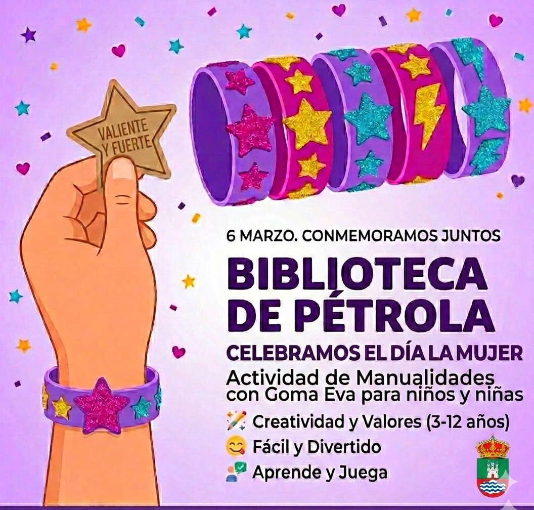 "¡El próximo 6 de marzo, la Biblioteca de Pétrola se llena de creatividad! Os invitamos a una divertida actividad de manualidades con Goma Eva para niños y niñas de 3 a 12 años, donde conmemoraremos juntos el Día de la Mujer. Ven a disfrutar de una jornada de aprendizaje y juego creando tus propios diseños."